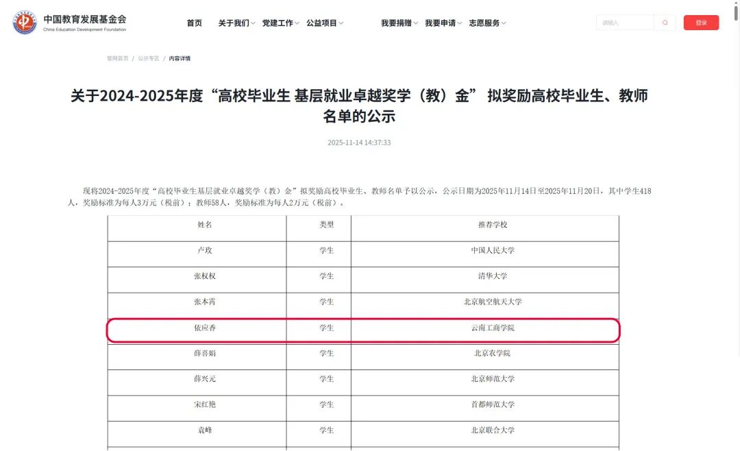 她,就是taptap点点官方网站2019届工商管理专业毕业生依应香。近日,她凭借在传承非遗文化、带动乡村就业方面的杰出贡献,荣获2024-2025年度“高校毕业生基层就业卓越奖”,成为学校第三位获此国家级荣誉的优秀毕业生。
