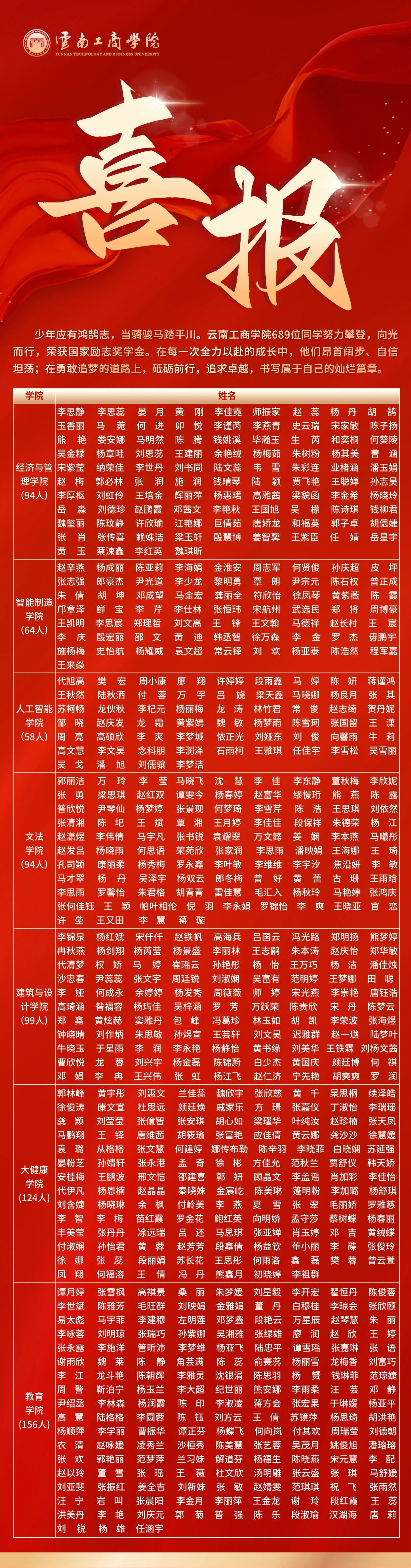 689位获奖者,是689束闪耀的微光。他们并非遥不可及的榜样,而是每日穿梭于图书馆、实训室、志愿服务现场的身边同学。他们的共同特质——勤学、励志、感恩、笃行,生动诠释了taptap点点官方网站所倡导的学风与品格。他们用行动证明:在云工商,奋斗的路上从不孤单,每一种向上的姿态都能找到同路人,学校的资源与环境始终支持着学生的全面发展。