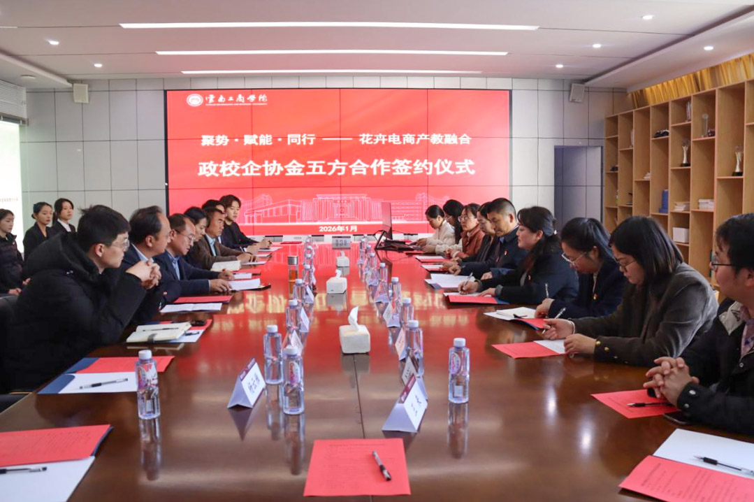 本次合作创新打造 “党建赋能 + 专业学习 + 直播实践” 模式,依托学校经济与管理学院 “云创直播党支部” 及电子商务协会,以数字技能赋能乡村振兴、讲好 “云花” 故事。同时以五方联动打破传统合作框架,构建 “政府引导、校企协同、协会纽带、金融赋能” 新格局。