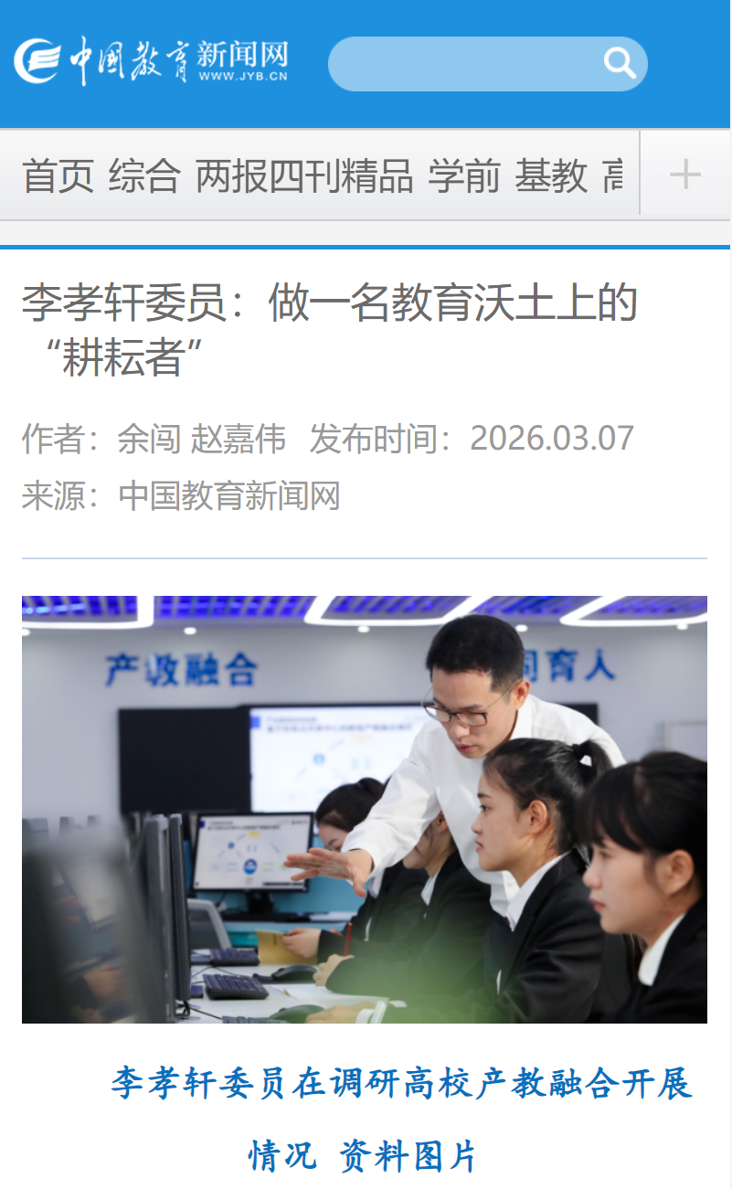 中国教育新闻网《李孝轩委员:做一名教育沃土上的“耕耘者”》