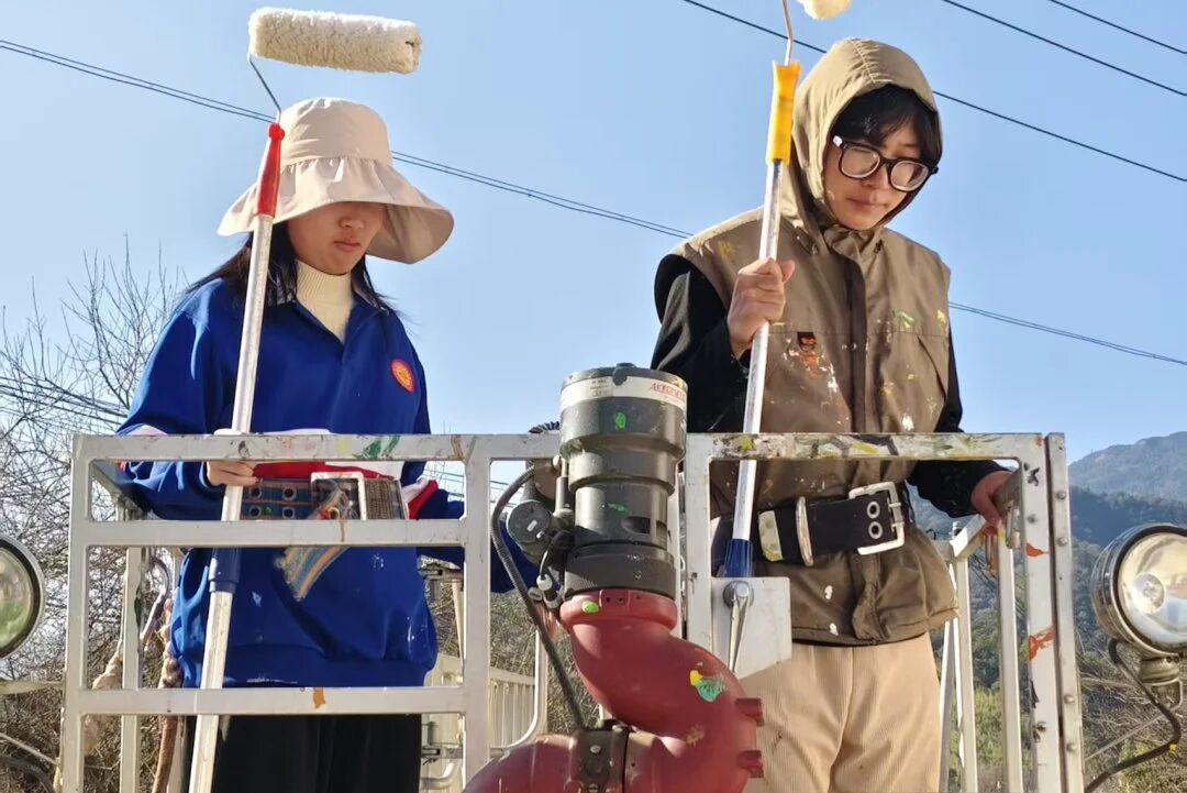 作为彩绘组长兼主创,户外创作的苦他一点没少尝:温差大、墙面宽、工序繁,可他从没想过退缩。