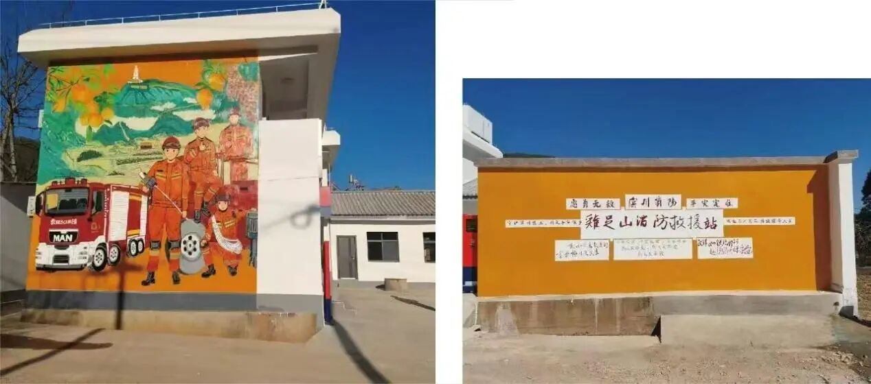 响应 “返家乡” 号召,张学建化身彩绘志愿者,带着专业本领扎根基层消防。紧扣 “忠勇无敌、宾川消防” 内核,他把宾川的特色果蔬、鸡足山的青山等地域元素融进设计,将消防员救援的热血瞬间、消防车的飒爽模样定格成主题壁画,连消防站的标语都设计得极具辨识度。