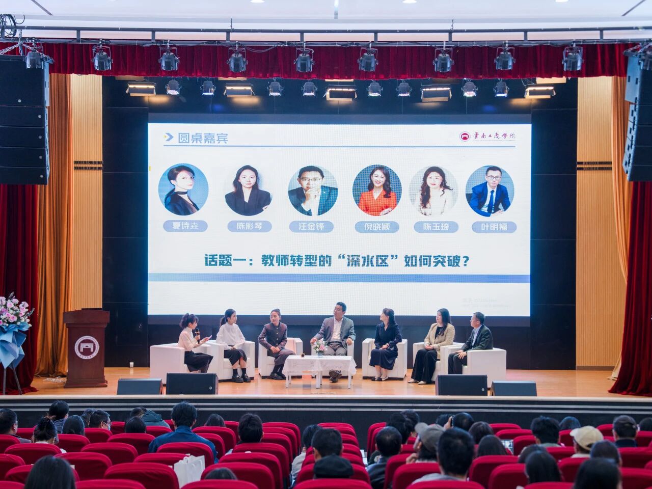 圆桌对话围绕 “教师转型的‘深水区’如何突破”“SC 课堂的‘形式’与‘实质’如何平衡” 两大主题展开,6位分享者与现场教师深入交流: