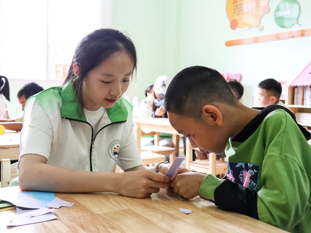 李昕芸格外关注留守儿童与特殊儿童,化身孩子们的暖心大姐姐。面对课堂上内向怯言的小朋友,她蹲身交流、课后耐心辅导,用温柔鼓励积攒孩子的勇气。看着孩子从默默独坐变成主动举手、笑容绽放,她真切懂得,教育的美好藏在温暖的陪伴与心灵守护里。