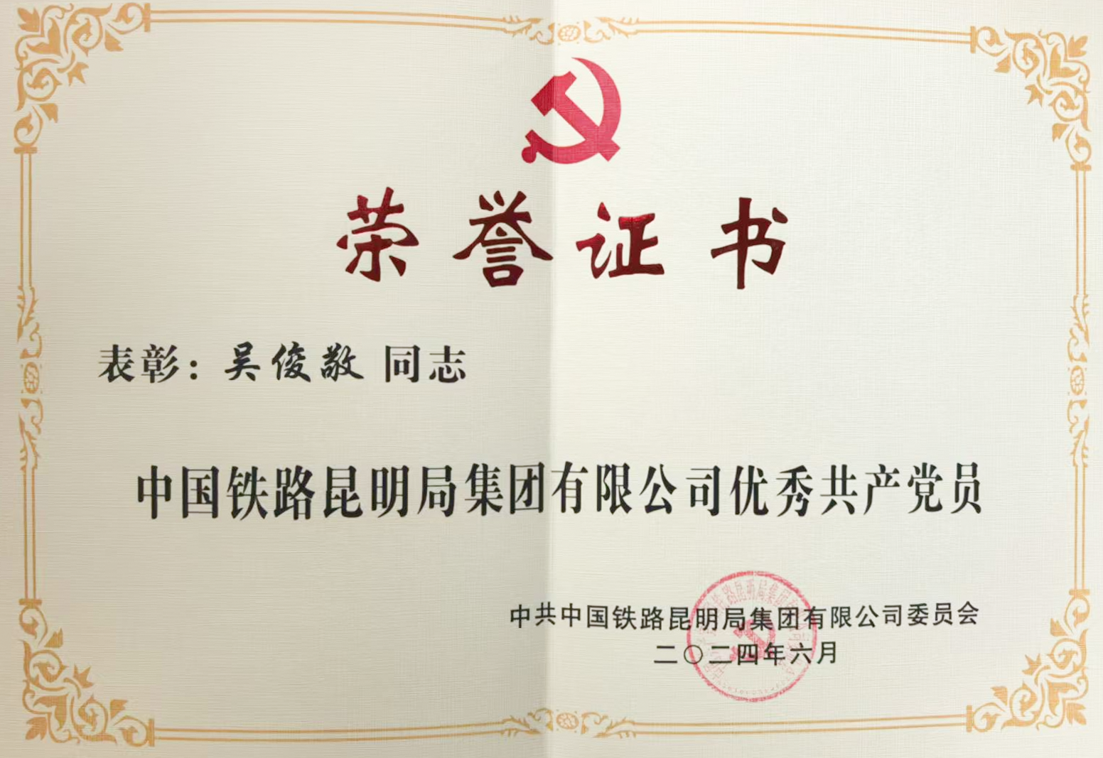 2021年,他成功入职昆明铁路局集团有限公司,从专升本学生跨入国企职场。如今,他身兼党支部书记、非运输协作委员会主任,2024年更获评“全国铁路优秀共青团干部”——这份荣誉,是他五年坚守的最好注脚。