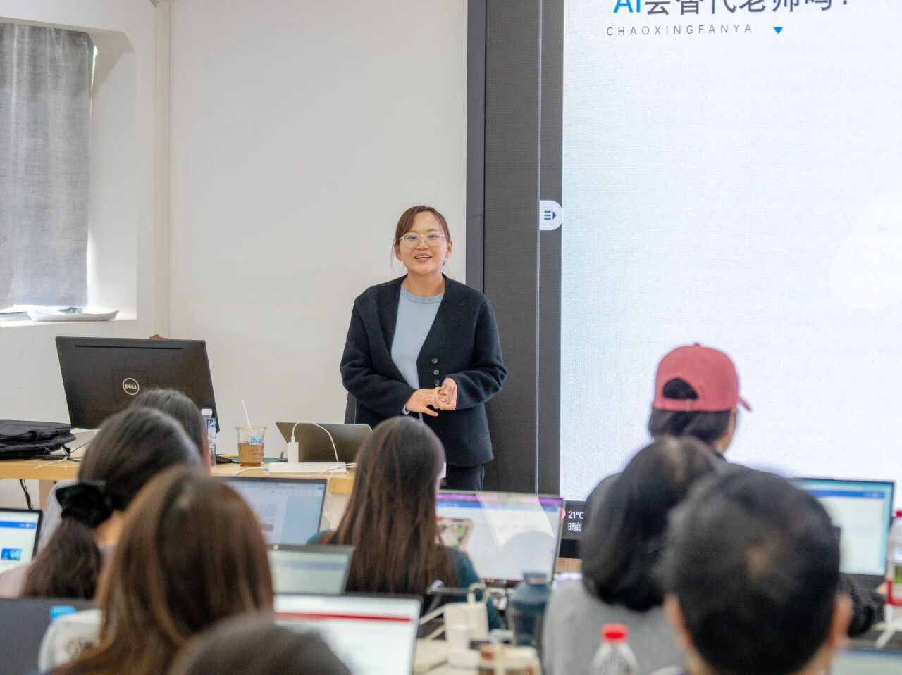 本次工作坊以 “实战、实用、实效” 为核心,紧扣教创赛备赛需求与骨干教师教学能力提升要点,设置 “数智课程设计与落地实施”“课程智能体开发与应用” 两大核心模块,层层递进讲解智慧教学工具使用与创新教学设计思路。教务处处长周丽萍发表开场致辞,强调数智化是推动教学创新、提升教育教学质量的重要抓手,勉励参训教师深学细悟、学以致用,将培训所学转化为备赛成果与教学实践,既助力教创赛赛场出彩,也以骨干教师为支点,实现智慧教学理念与方法的校内辐射转训。