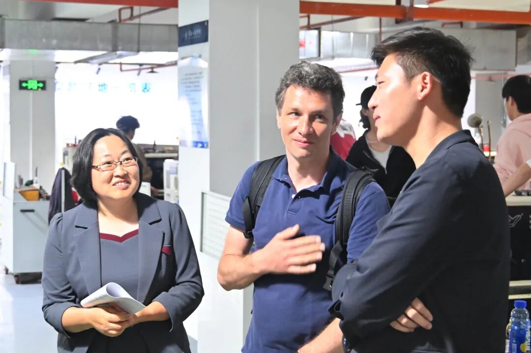 Thomas Mailart 先生一行先后实地考察了学校多个教学科研平台及学生生活社区。围绕学校“办强工科,办特商科”的办学定位,参访团先后走进华为无线技术实训中心、工程训练中心,深入了解学校在传统工科人才培养与多元复合智能型人才培养融合发展方面的实践成果。在京东产教融合学院,Thomas Maillart 先生与参与助农直播的学生亲切交流,并品尝昆明特色蓝莓,对学校应用型人才培养模式给予高度评价,称赞“这是非常棒的教育模式,也是最好的产教融合案例”。