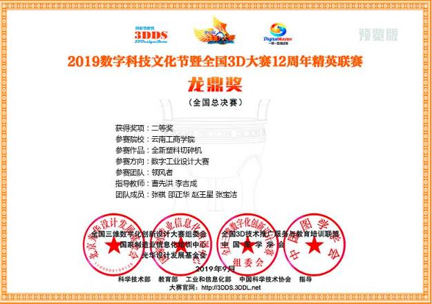 云工商学子喜获全国三维数字化创新设计大赛(精英联赛)全国二等奖