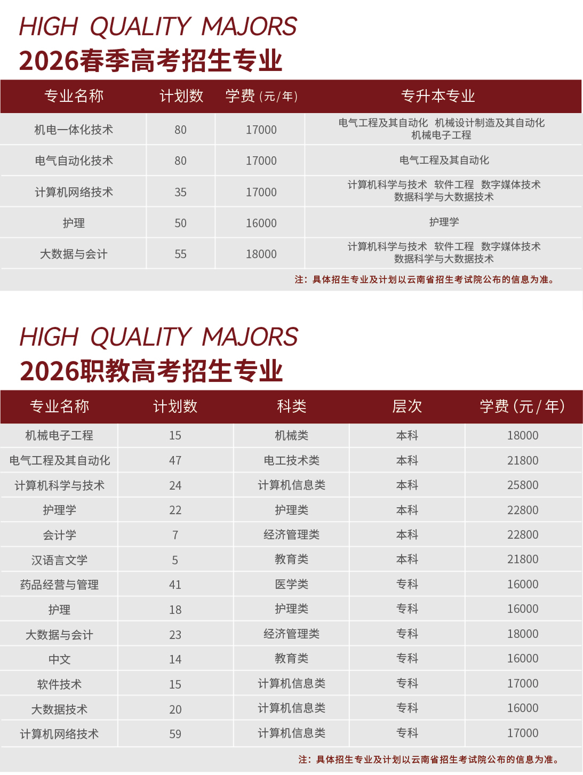 学校在校生人数25000余人,开设专业涵盖工学、管理学、经济学、医学、教育学、艺术学、文学等7个学科门类。在云南省高校本科专业综合评价中,2024年学校25个专业获评优质专业,居全省同类院校第一。连续十余年毕业生去向落实率持续保持在96%以上,被评为全国高校就业50强。