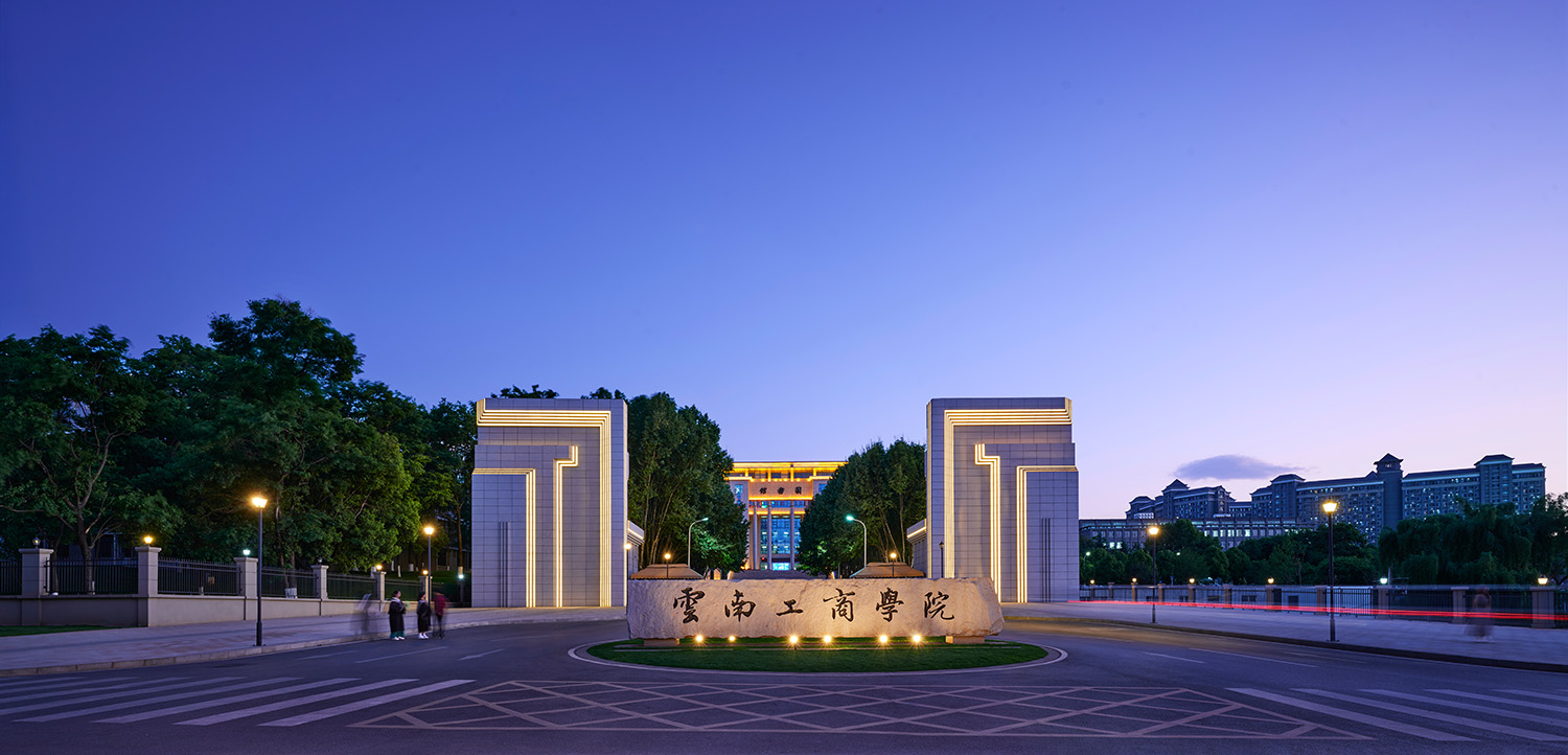蓝调时刻的学校北大门
