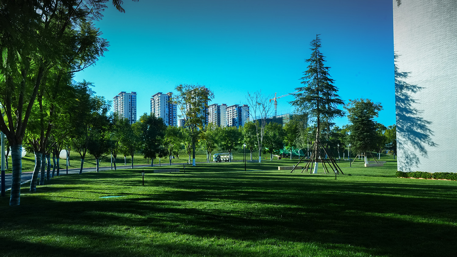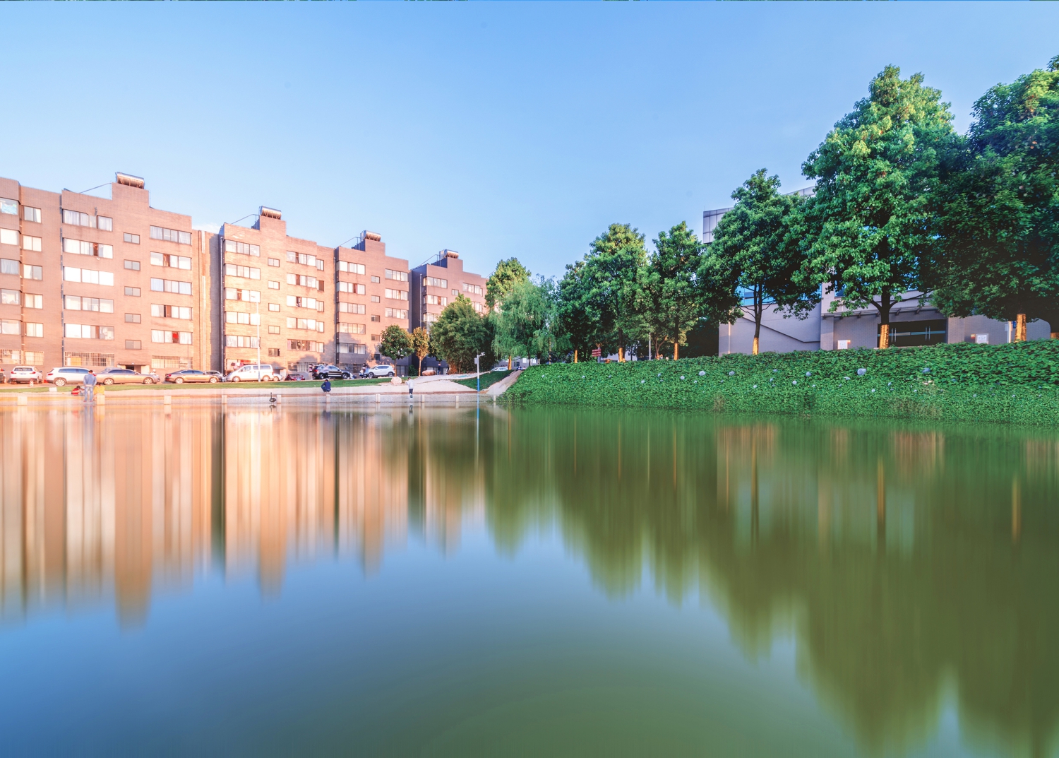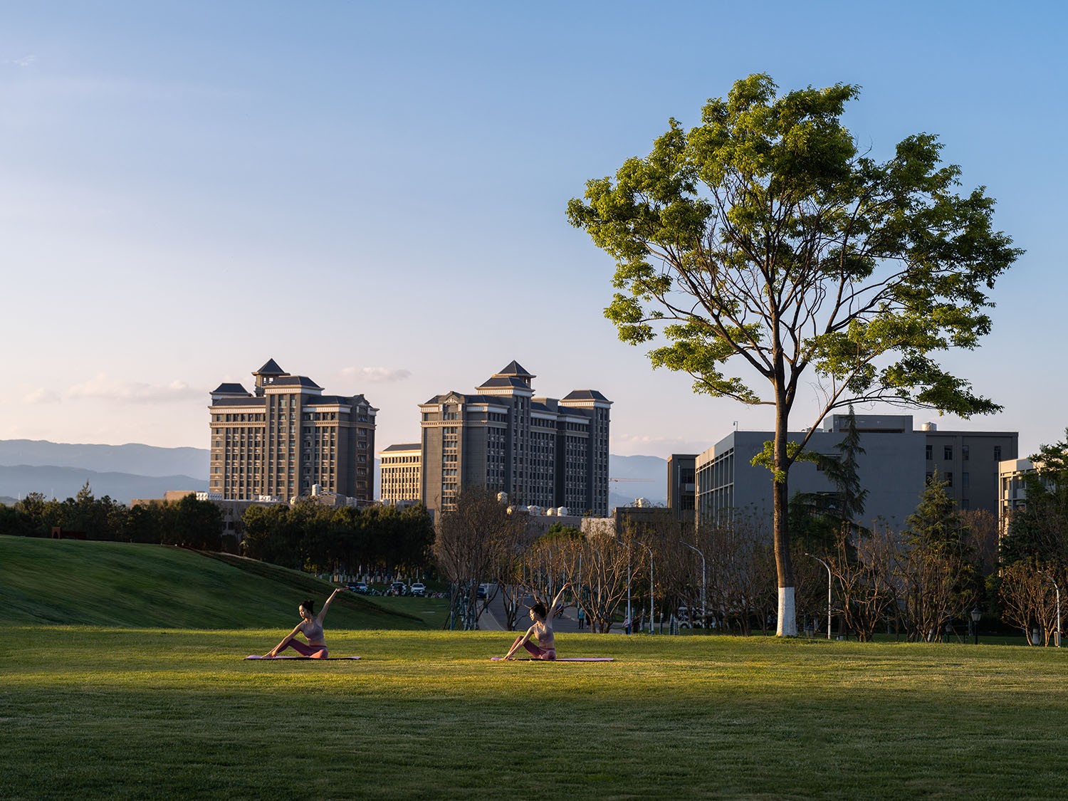 晨光中的校园大草坪