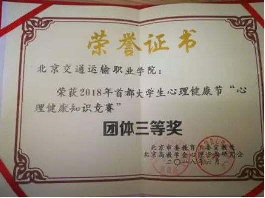 学院今年首次参加北京市525心理健康节心理健康知识竞赛活动,竞赛有四十多所首都高校报名参加,在学院心理咨询室的组织下,在学院师生的热烈支持与参与下,我院荣获团体三等奖,成为获奖唯一的职业院校。