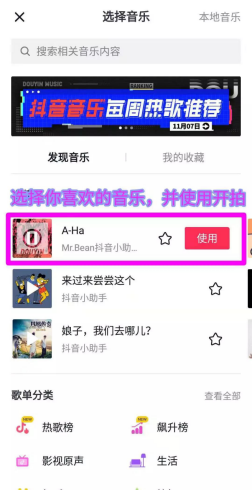 选择歌曲后就可以拍视频哦!