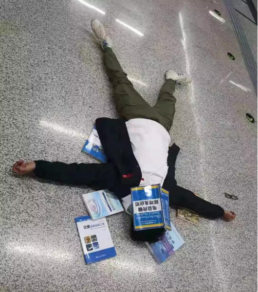 此时一位交管系学子高调出没,不慎摔倒,落入了计算机类书籍的怀抱