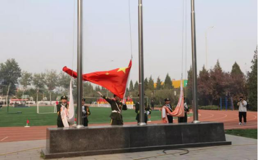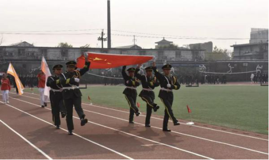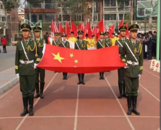 ▲国旗、校旗、红旗队入场