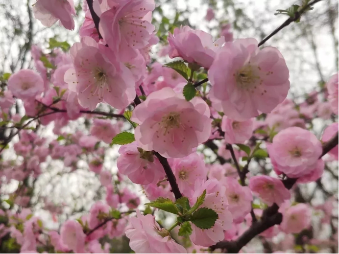 捧一簇,十里尽桃花。