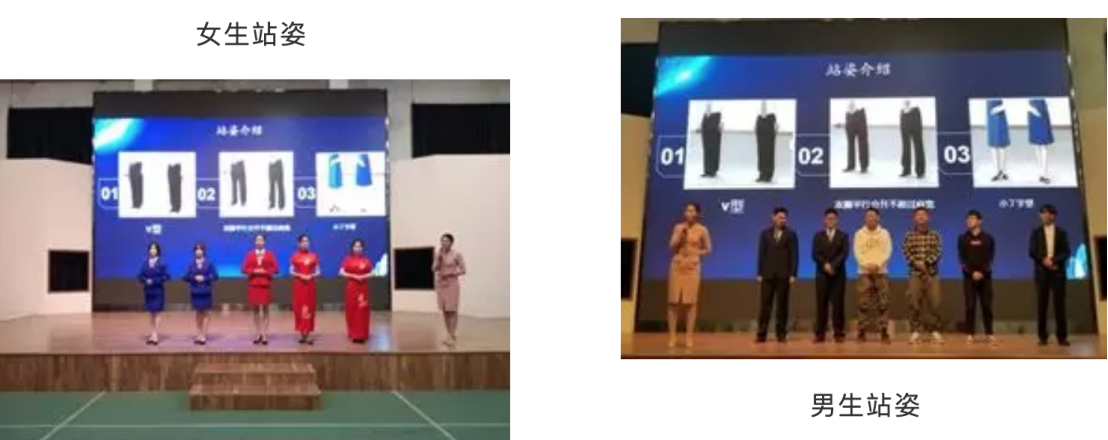 活动现场,陆老师介绍了站姿和手势等知识。不同性别、不同身材的人适合的站姿不同,通过现场示范和图片展示,让同学们有了更加深刻的学习和理解。