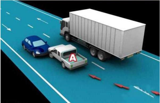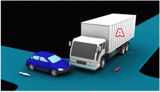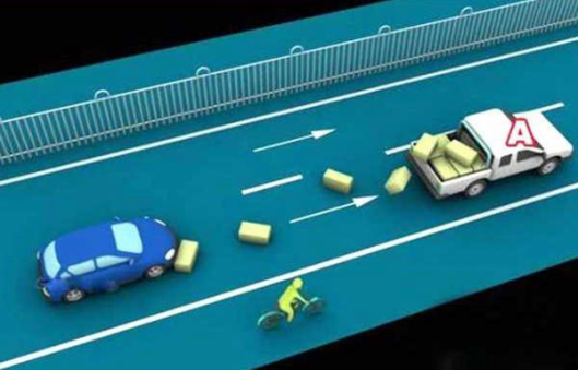 2、装载的货物遗洒过程中导致交通事故的,图中所示,均为A车全责。
