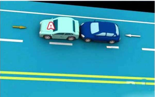 7、与对面来车有会车可能时超车的,图中所示为A车负全责。