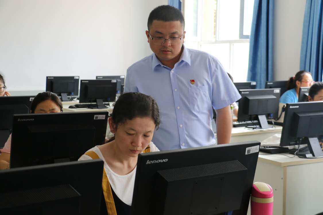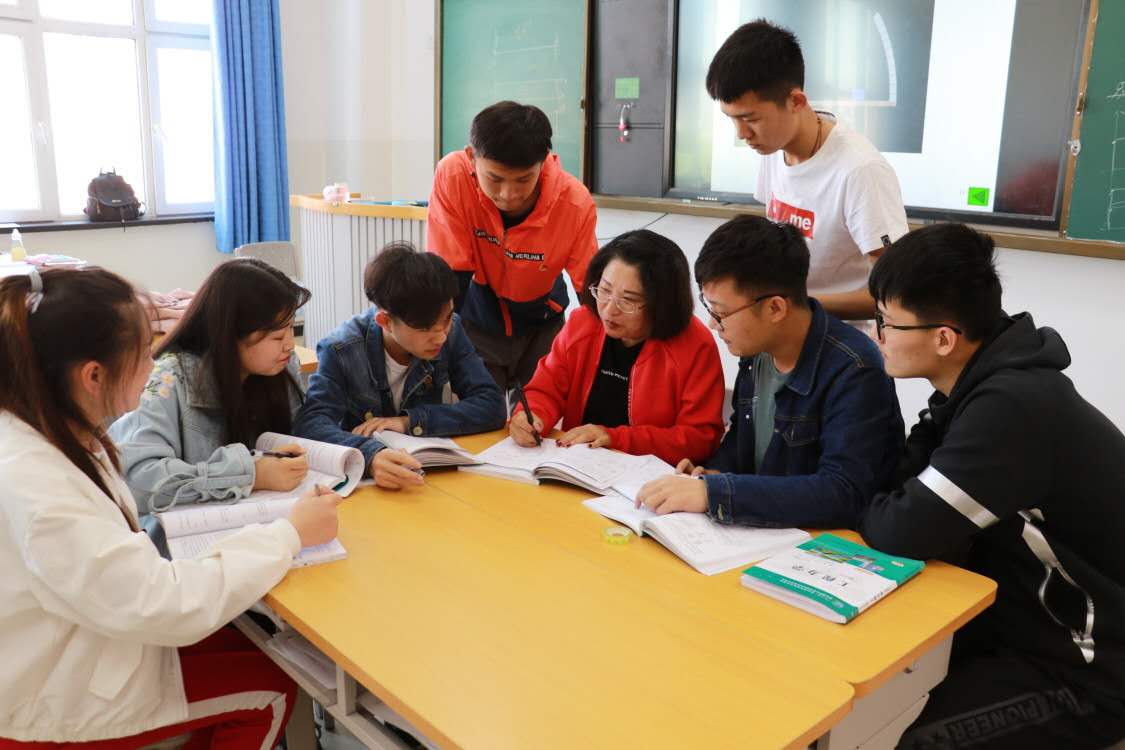 董丽艳(右四)辅导学生。