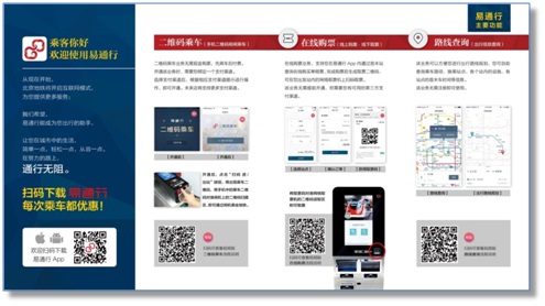 市场上应用系统为ios和安卓系统的主流智能手机都支持下载、使用易通行APP。乘客在主流的手机APP应用市场搜索“易通行”,就可以很方便地完成下载,注册后即可使用。