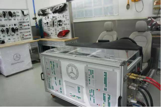 实训楼四楼、五楼是德系汽车品牌专业实训基地,实训室立足北京汽车维修技术行业,为北京地区保时捷、奔驰、大众汽车培养汽车机电维修、维修接待、配件管理、二手车评估以及市场专员等售后服务技术人才。实训室的功能定位满足奔驰、保时捷、大众汽车品牌校企合作项目教学。建设的目标完成校企合作项目课程教学和实训教学,包括的课程有:汽车维护、发动机机械维修、发动机电控系统故障诊断、汽车电气故障诊断、变速器拆卸检测、空调系统故障诊断、底盘电控系统故障诊断等课程的教学工作。