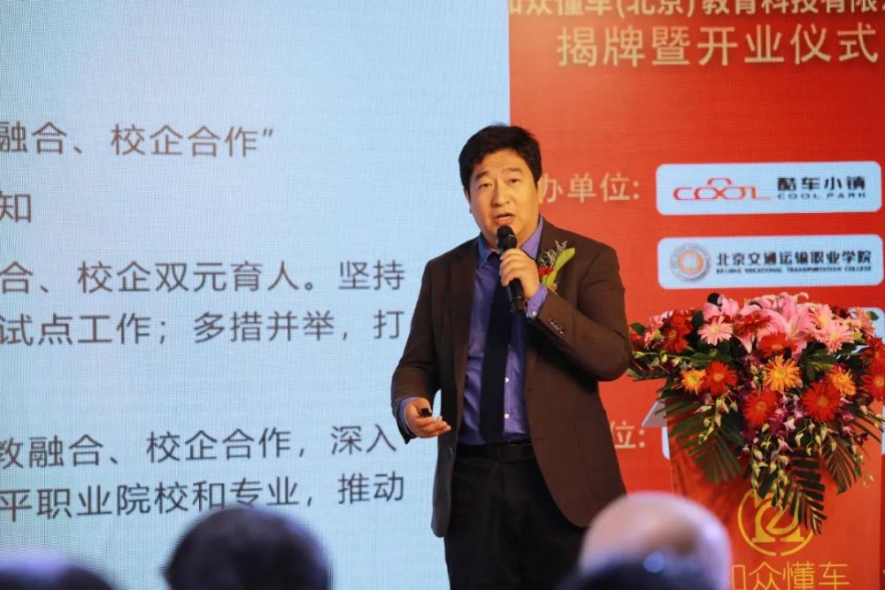 他指出,以习近平同志为核心的党中央对职业教育重视的程度之高前所未有,推动职业教育改革发展的力度之大前所未有,我国职业教育迎来了新的重大发展机遇。北京酷车小镇充分认识发展职业教育的战略意义,积极落实《国家职业教育改革实施方案》,结合园区的发展定位,完善新的发展理念、形成新的发展格局、增强新的发展动能,乘势而上,深化产教融合、校企合作,必将为小镇的发展提质赋能,必将在职业教育领域大有可为、大有作为。
