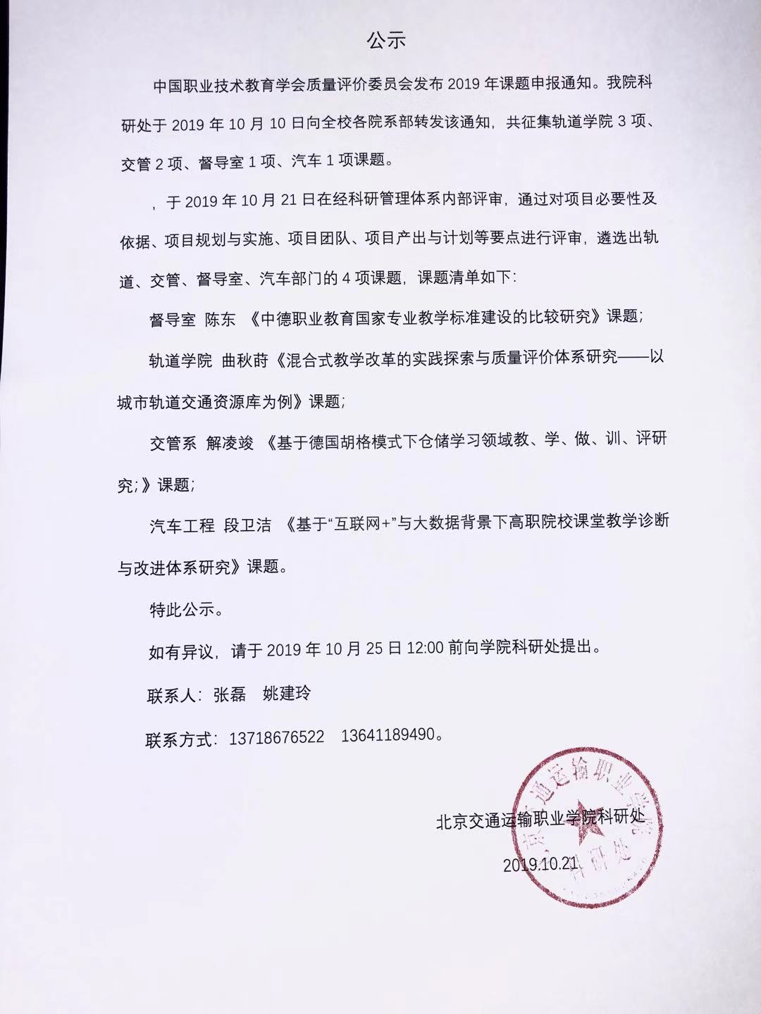 科研处丨公示:中国职业技术教育学会质量评价委员会发布2019年课题申报通知