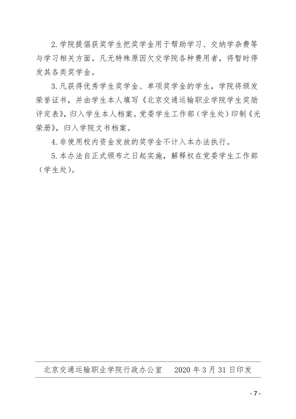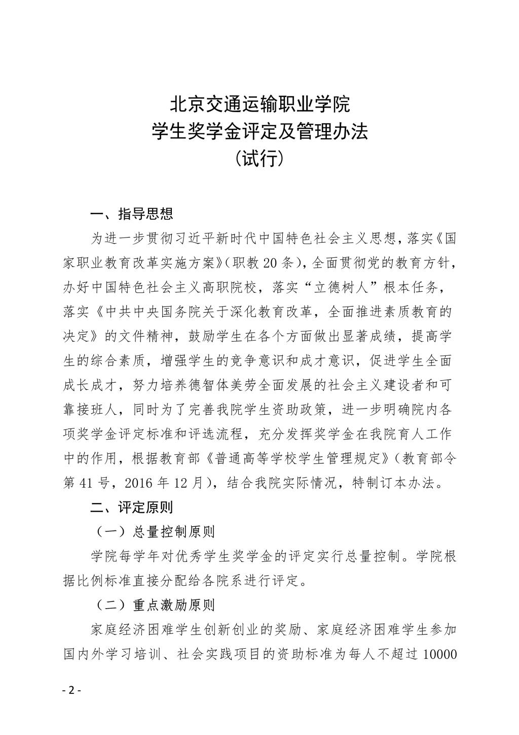 交职院办发〔2020)13号关于印发学生奖学金评定及管理办法的通知