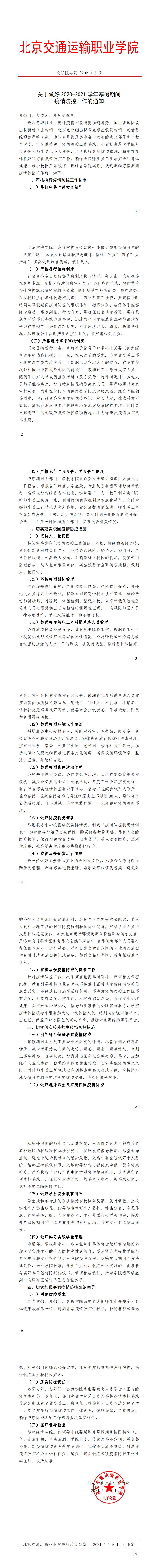 交职院办发〔2021〕5号 关于做好2020-2021学年寒假期间疫情防控工作的通知