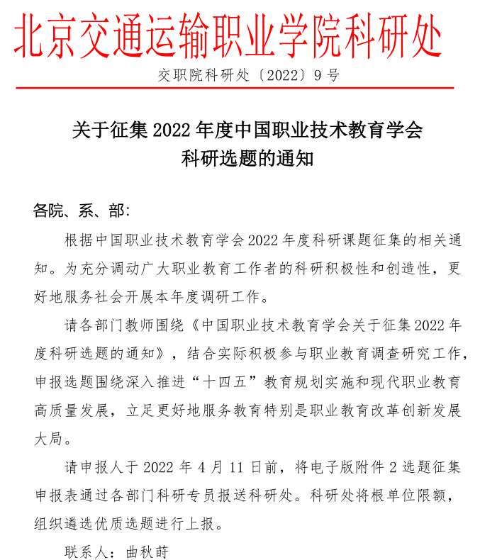 科研处-关于征集2022年度中国职业技术教育学会科研选题的通知