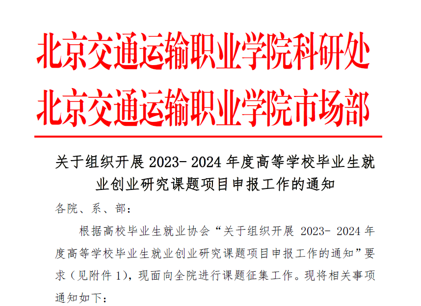 关于组织开展2023-2024年度高等学校毕业生就业创业研究课题项目申报工作的通知