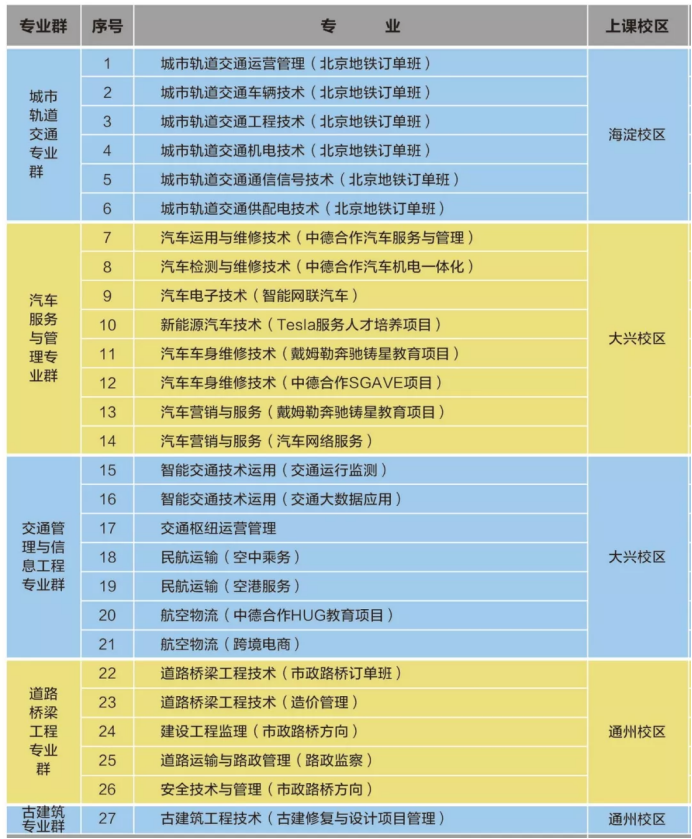 城市轨道交通专业群、汽车服务与管理专业群、交通管理与信息工程专业群、道路桥梁工程专业