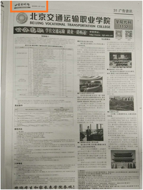 2、《北京晚报》文教版《2018年高职自主招生报考指南》特刊
