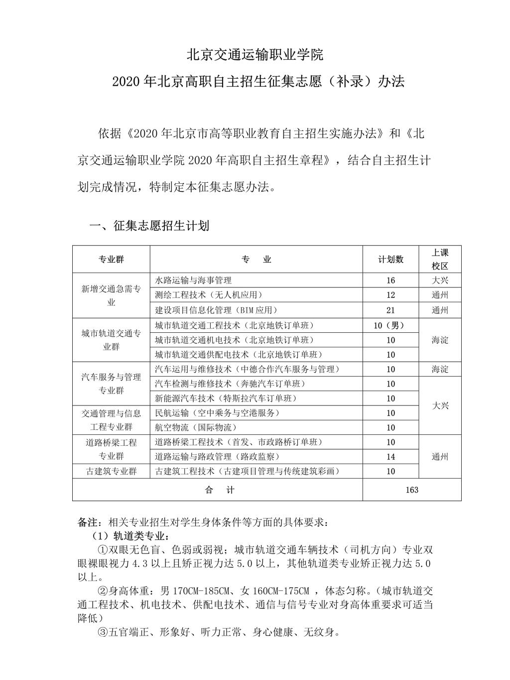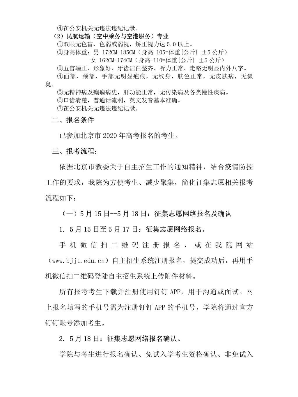 "2020年北京高职自主招生征集志愿(补录)办法