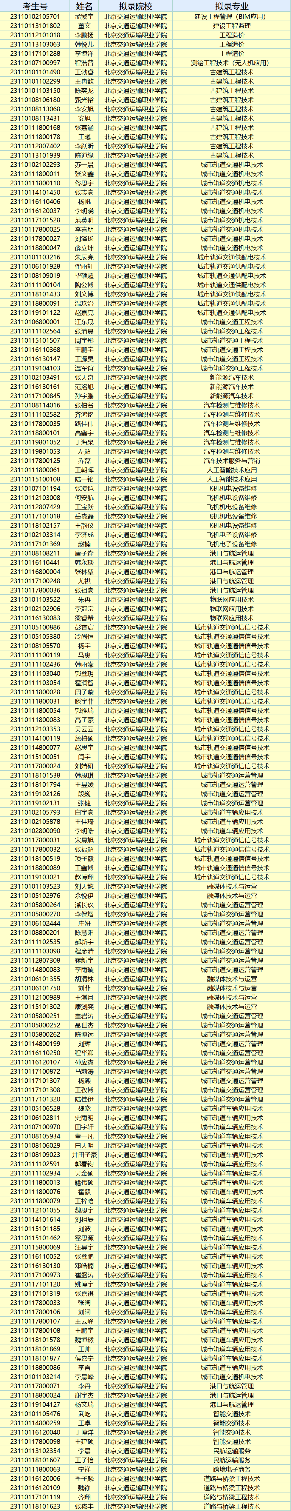 北京市2023年高职自主招生拟录名单公示
