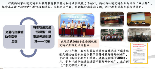 √“师资培训基地”——全国城市轨道交通骨干教师培训基地,北京市教师素质提高工程(城市轨道交通专业群)培训基地;