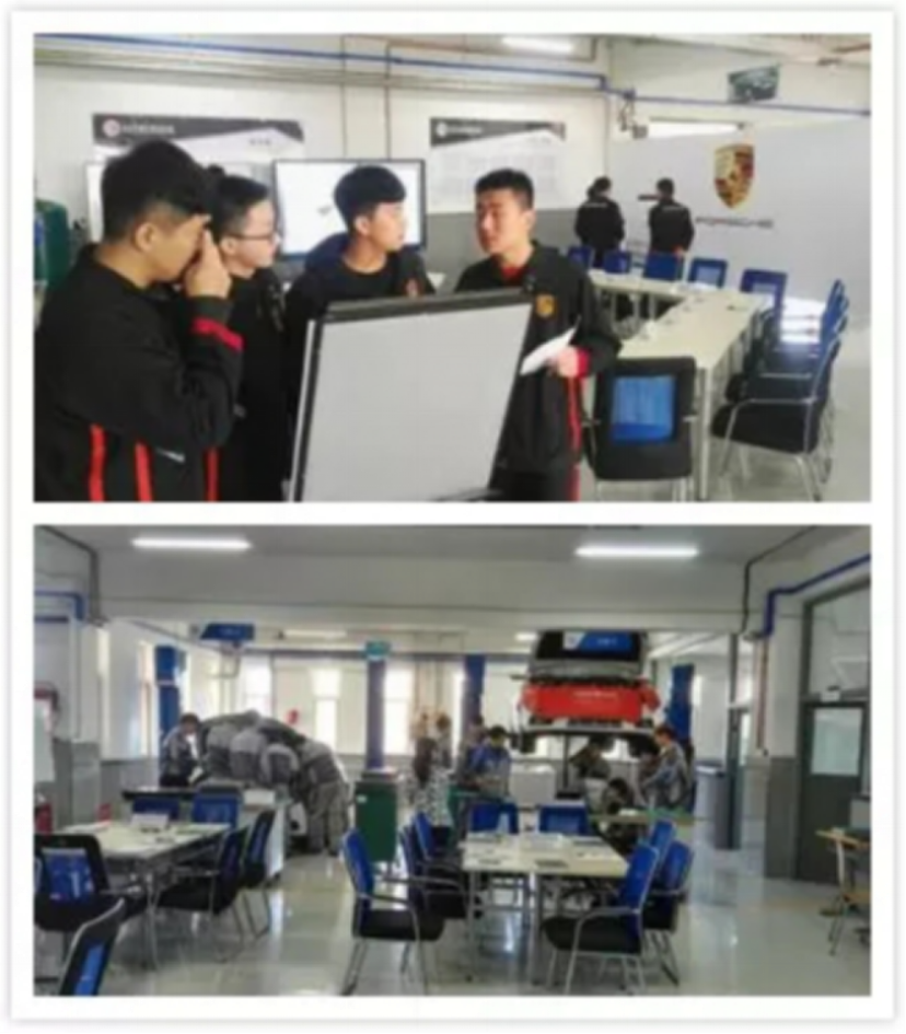 目前汽车工程系共有丰田、通用、大众、本田、保时捷PEAP、SGAVE校企合作实训中心等13个校内实训场地,德众丰通、祥龙博瑞、华阳奥通等11处校外合作基地。根据课程体系特点和校企合作项目需求,按照学生未来职业发展规律,分别包括专业基础实训、专业综合能力实训、校企合作实训等多个特色模块。