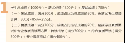 考生总成绩(1000分)=笔试成绩(300分) + 复试成绩(700分)