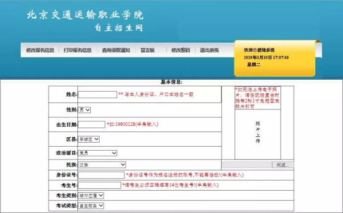 2019年北交院高职自主招生网上报名吧!