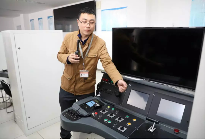 姚淑鹏老师现场展示地铁驾驶教学。