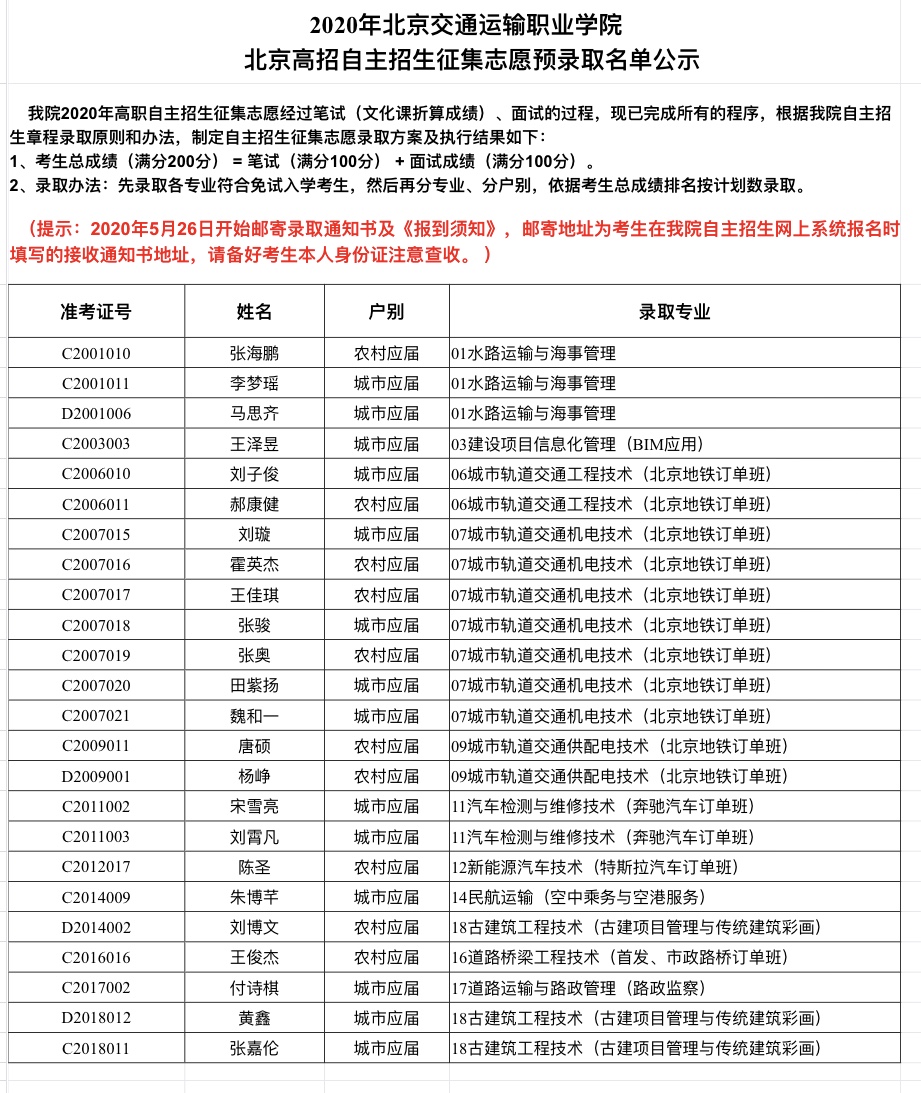 2020年best365中国官方网站北京高招自主招生征集志愿预录名单公示