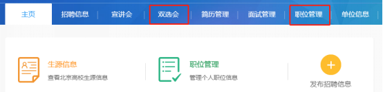 添加职位需要在报名双选会前进行操作,先在“职位管理”处添加本单位需要招聘的职位信息,报名双选会时直接勾选职位信息即可。