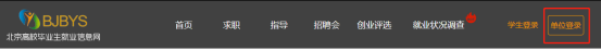 1.用人单位参会报名,请登陆北京高校毕业生就业信息网(www.bjbys.net.cn)首页,点选右上角“单位登陆”按钮。