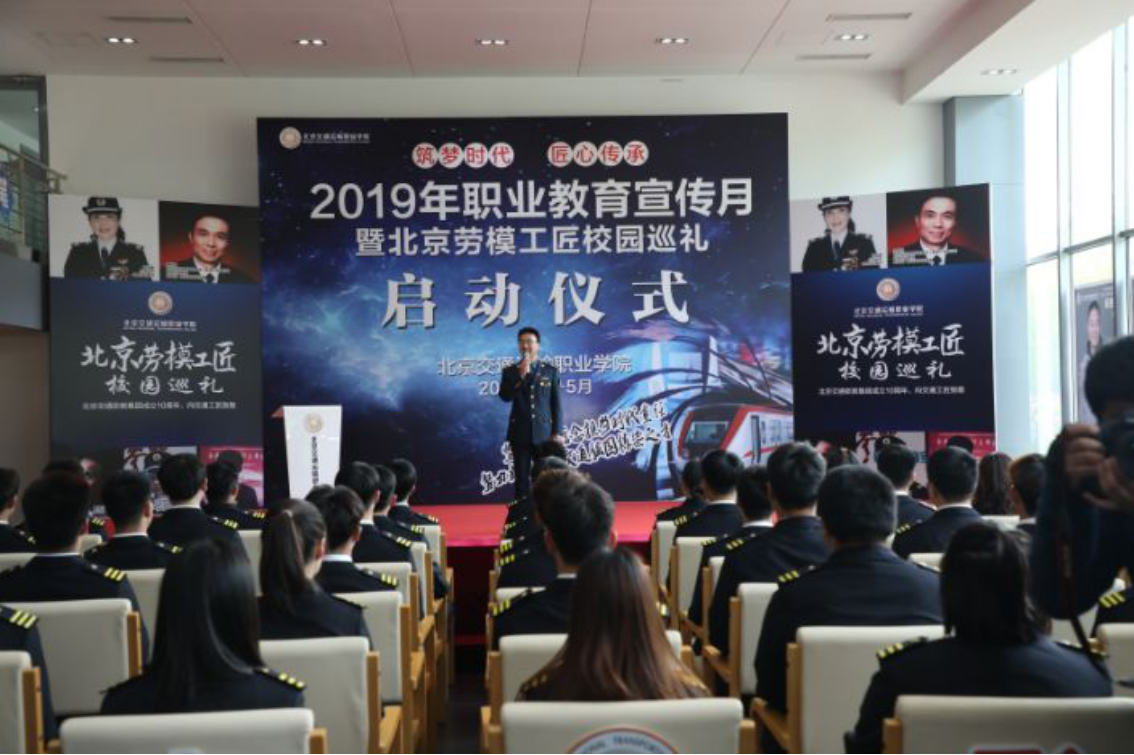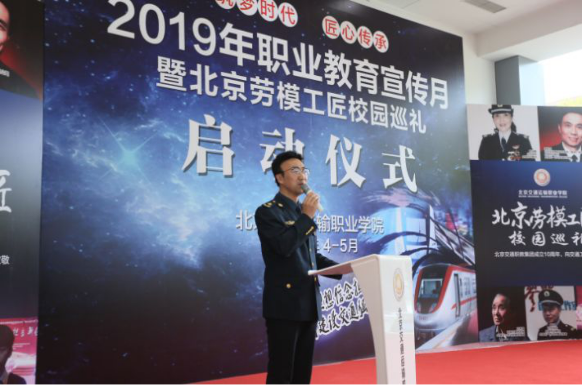 4月25日,2019年职业教育宣传月暨劳模工匠校园巡礼启动仪式在学院海淀校区举行,多名劳模工匠和技能大师出席活动,活动受到正在学院调研北京市交通职业人才培养工作的交通运输部党组成员、副部长刘小明一行领导的关注。北京交通宣讲团的四名宣讲员到场,北京市交通委员会顺义公路分局李亮现场宣讲自己扎根平凡岗位、服务百姓出行的优秀事迹,传递出坚守一线、甘于奉献的劳模精神,打动了参与活动的领导和师生。