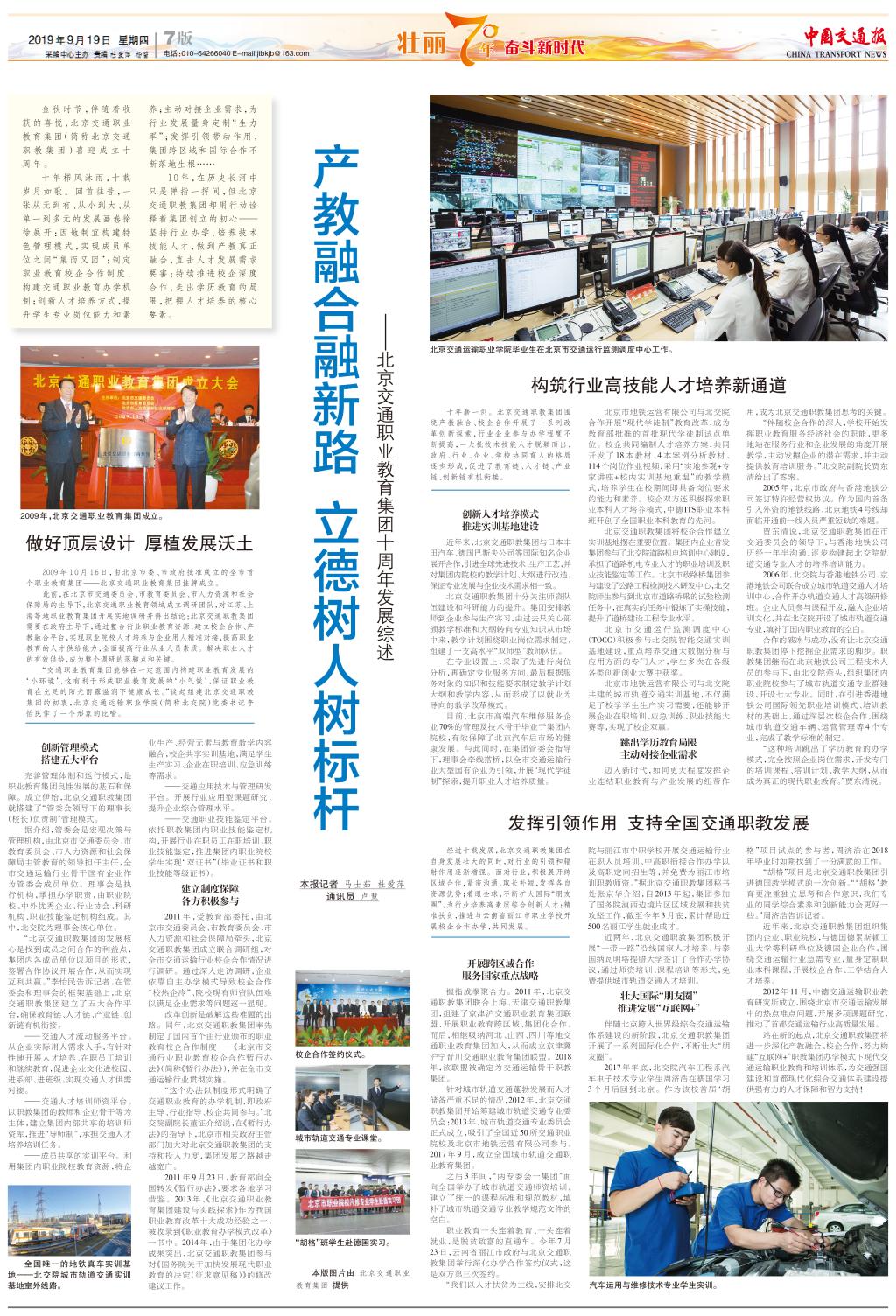 金秋时节,伴随着收获的喜悦,北京交通职业教育集团(简称北京交通职教集团)喜迎成立十周年。