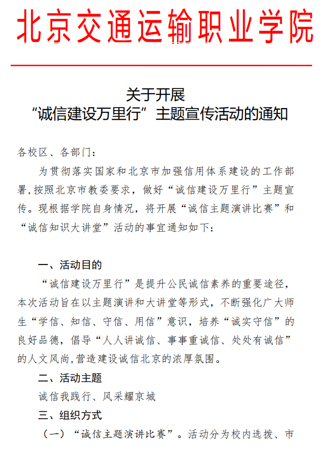 关于开展“诚信建设万里行”主题宣传活动的通知