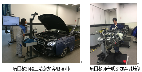 戴姆勒项目的教师来源于我院推荐的现有专业中英语基础较好的中青年教师,教师经过学院推荐、戴姆勒中国选拔考试确定。目前售后机电项目有4名认证教师。为强化戴姆勒中国职业教育项目教师的教学能力,戴姆勒中国将项目内教师送到梅赛德斯·奔驰地区培训中心、德国培训学校以及经销商处培训,成绩合格后承担戴姆勒项目的教学。