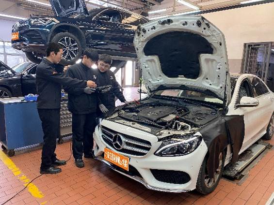 戴姆勒中国在我院每年根据人才需求开设戴姆勒奔驰汽车订单班(组班数量由戴姆勒中国与我院提前约定),第一个学年内,学生在校学习公共基础知识、专业基础知识;第二个学期组建“奔驰班”,借鉴德国“校企双元育人”模式开展教学,组织学生分别在学校、企业学习戴姆勒项目课程。