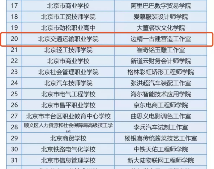 边精一古建营造工作室入选第一批北京市职业院校技术技能大师工作室建设名单。